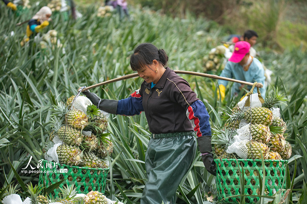 隨著雨水節(jié)氣的到來,海南省萬寧市種植的菠蘿陸續(xù)成熟,果農忙著采摘、挑揀、裝筐,呈現一派繁忙的豐收圖景。