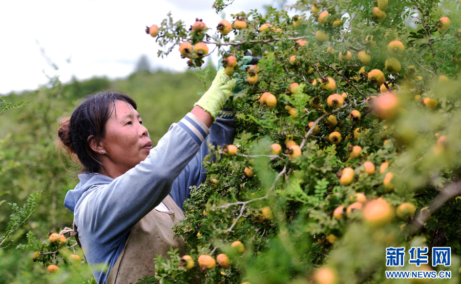 ??龍里縣茶香村村民采收刺梨。新華網(wǎng)發(fā)(龍里縣融媒體中心供圖)