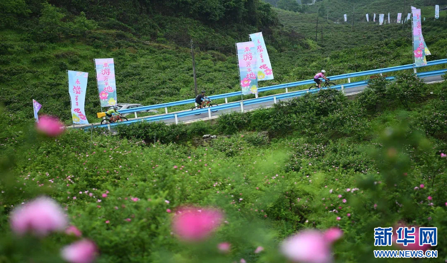 ??刺梨花海騎賞大會的運動員在騎行。新華網(wǎng)發(fā)(龍里縣融媒體中心供圖)